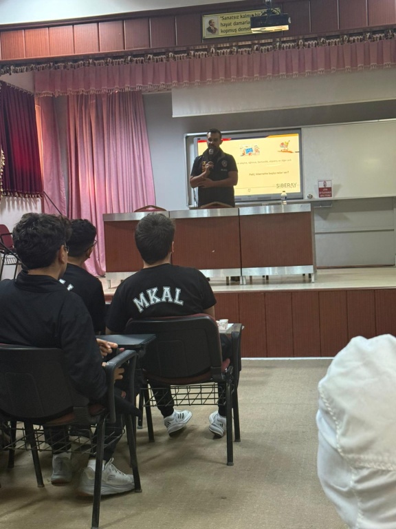Rehberlik Servisi FARKINDALIK GÜNLERİ çalışmaları kapsamında Rehber öğretmenimiz Songül DARDAĞ ın eşliğinde ilimiz Emniyet Müdürlüğünden SIBER SUÇLAR ,SIBER FARKINDALIK ve DOĞRU TEKNOLOJİ KULLANIMI konusunda bütün 9 ve 10 sınıf öğrencilerimizin tamamına seminer verilerek ,öğrenci soruları yanıtlanmıştır.